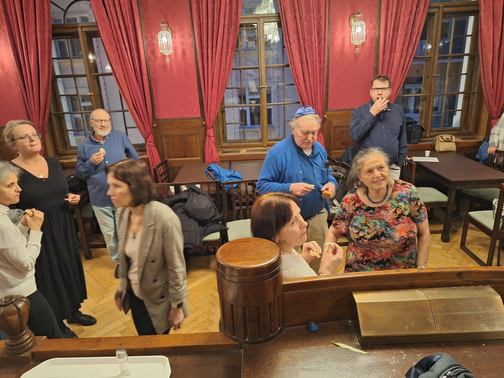 Prosíme Vás, abyste nám nejpozději v pátek 3. října do 12 hod. poslali svou přihlášku na e-mail Tato e-mailová adresa je chráněna před spamboty. Pro její zobrazení musíte mít povolen Javascript. nebo SMS na +420739776660, neboť musíme včas předat seznam účastníků ochrance ŽO v Praze. Nezapomeňte si osobní doklady! Zájemce o závěrečné sváteční pohoštění včetně doobjednávaného košer vína v celkové ceně 350 Kč, která byla stanovena podle dohody s Restaurací Šalom (bude vybíráno po vstupu do sálu ve 3. patře), žádáme, aby nám svou závaznou objednávku na večeři oznámili ve své přihlášce! Na osobní žádost ve své přihlášce můžete dostat i vegetariánské, veganské či bezlepkové jídlo. Kuchyně restaurace je nemléčná. Požadovaný počet večeří musíme 2 pracovní dny předem oznámit vedení Restaurace Šalom.