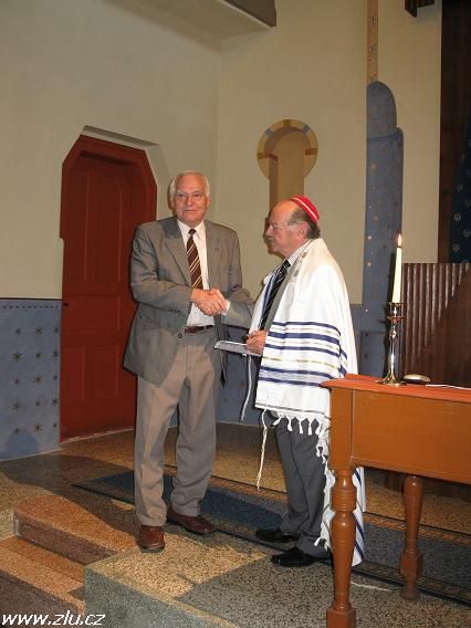 Fotografie z oslavy příchodu nového židovského roku 5769, k níž se v neděli 5. 10. sešli v děčínské synagoze členové a přátelé Židovské liberální unie v ČR společně se členy Židovské obce v Děčíně. Novoroční bohoslužbu, vzhledem k náhlému onemocnění Dr. L. Aravy-Novotné (které přejeme brzké uzdravení) samostatně vedl kantor ŽLU Ing. Viktor David Schwarcz. Této náboženské a společenské události předcházelo volební členské shromáždění děčínské obce.