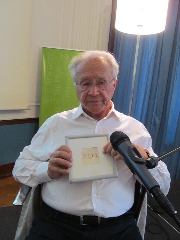 Vzácné a zcela nenahraditelné vzpomínky 91letého pana Prof. Frieda hluboce zaujaly všechny posluchače. Pro ilustraci je 10 fotografií z této krásné události. Na snímku 8 vidíte dojatého pana profesora s obrazem tajemných čtyř stromů (detail na snímku 9). Zde pan profesor vzpomíná, jak jich v dětství bylo pět kamarádů - Kurt Kiki Alt, Šlomo Spronz, Jizchak Zlatner, Izo Miadovnik a on, Šaňo Fried. Všichni čtyři jeho nejbližší přátelé z mládí šli do prvního transportu (ze kterého on byl jako zázrakem vyjmut) a už se žádný z nich nevrátil… Děkujeme panu Prof. Friedovi za jeho vzpomínky a životní moudrost. Přejeme mu pevné zdraví, obdivujeme jeho vitalitu a intelektuální schopnosti. Těšíme se na brzké další setkání!