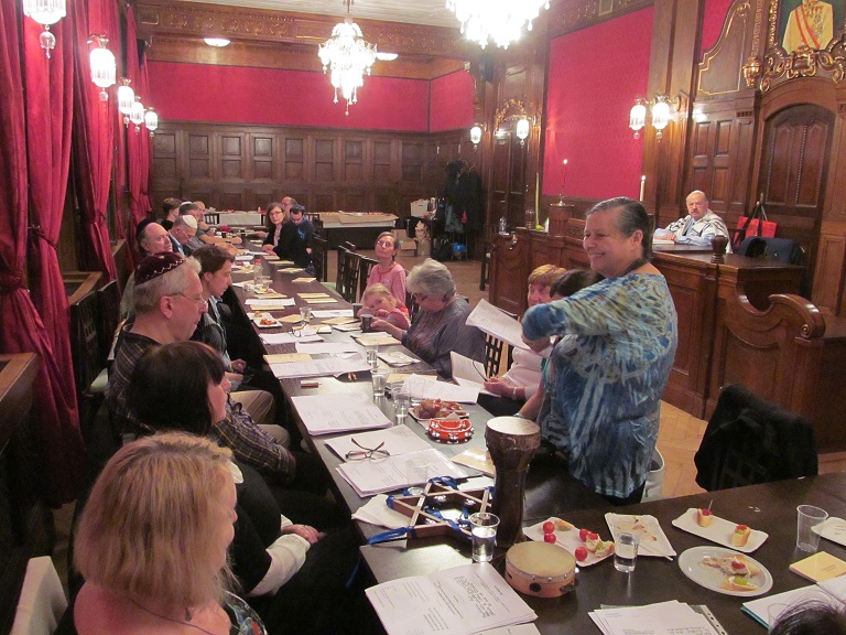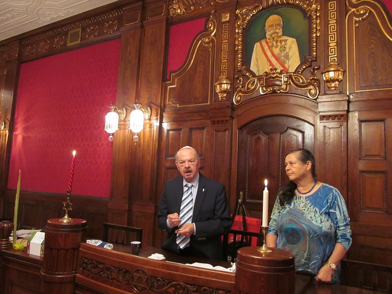V úterý 14. 10. 2014 na radnici Židovské obce v Praze v Maiselově 18 proběhla oslava svátku Sukot. Uznání zaslouží pěvecká skupina ŽLU Rimon (pod vedením Anny Wagnerové a Evy Feiglové), která nás v úvodu oslavy písněmi i slovem provedla svátky židovského roku. Zvláště jsme vděčni ctěnému kantorovi ŽLU Viktoru Davidu Schwarczovi, který zahájil rituál svátku Sukot modlitbami a poté pokračoval ve svých vzpomínkách na židovské komunity Slovenska, tentokrát nám připomenul slavnou ješivu a synagogu v obci Huncovce (maďarsky: Hunfalva) pod Tatrami. Naučil nás také hlavní rituální zvyk svátku Sukot, a to jak potřást pravým lulavem s etrogem. Pro potěšení a vzpomínku přikládáme 12 fotografií.