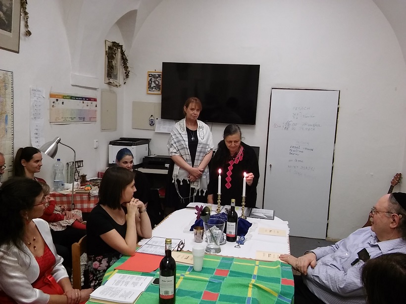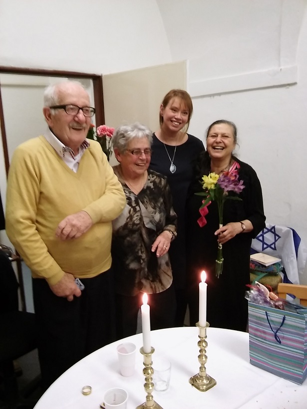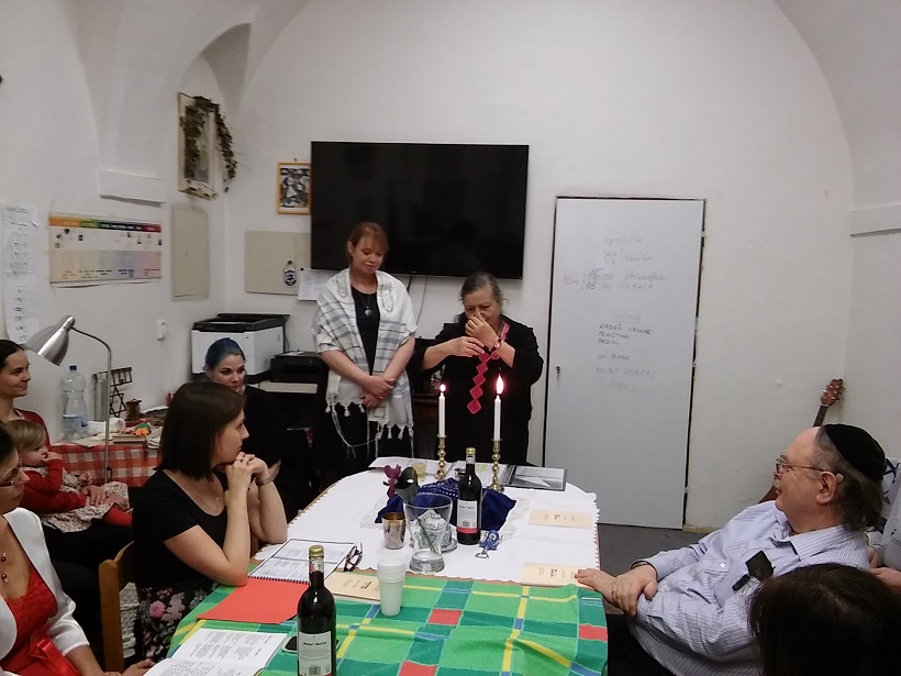 Milí přátelé, Židovská liberální unie v ČR v pátek 28. dubna 2017 od 18 hodin v naší modlitebně ve Dlouhé 37 v Praze 1 uspořádala už druhé přivítání dne odpočinku Kabalat Šabat pod vedením nové kantorky ŽLU, Jaroslavy Hannah Maxové. Kantor a prezident ŽLU Viktor David Schwarcz se kvůli mírnému nachlazení a deštivému počasí nakonecm tohoto setkání nezúčastnil. Naším zahraničním hostem byl londýnský dramatik Lionel Goldstein s chotí. Po společných modlitbách, ke kterým se tentokrát sešlo 28 dospělých a 3 děti, se uskutečnil kiduš, vedený Benjaminem Kurasem a Larry Somerem, se zpěvem tradičních šabatových písní (zmirot) izraelským košer vínem a občerstvením, kdy jsme zároveň společně oslavili narozeniny členky představenstva ŽLU a lektorky biblické hebrejštiny Evy Feiglové, ad mea veesrim šana!
