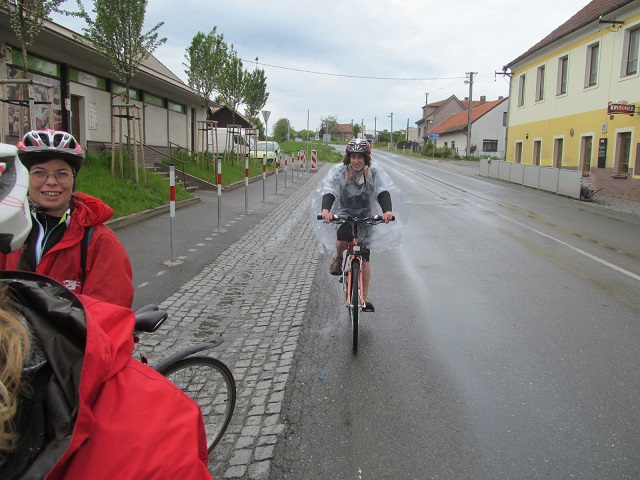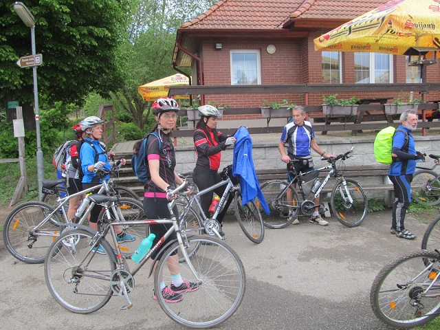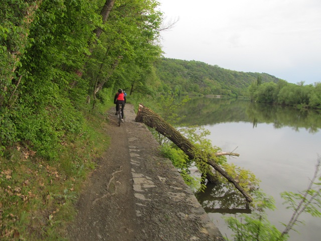 Poté se účastníci vydali na 75 kilometrů dlouhou cestu zpátky do Prahy. Počasí bylo zpočátku slunečné, před Roudnicí se však přihnaly mraky a začal liják, naštěstí se cyklistům podařilo ukrýt pod střechu hospody U Grobiána. Po půlhodině déšť ustal a všichni se vydali na další cestu. Přestávku na oběd si udělali až na 40 kilometru v Nelahozevsi, v restauraci Marina na břehu Vltavy. Po občerstvení pokračovali do Kralup, kde cestu ukončilo 8 účastníků, kteří odjeli do Prahy vlakem. Zbylých 15 cyklistů vyrazilo z Kralup po proslulé, úzké, ale malebné vltavské navigaci, které však byla po dešti blátivá a kluzká. Všichni překonali nástrahy této stezky. Jeden účastník se odpojil od skupiny ve směru na Máslovice. Zbývajících 14 dojelo po břehu Vltavy až do Klecánek, kde si společně připili na zdar této krásné akce a slíbili si, že příští rok se na ní opět sejdou. Z Klecánek pak všichni snadno dorazili do Tróje a rozjeli se do svých domovů.
