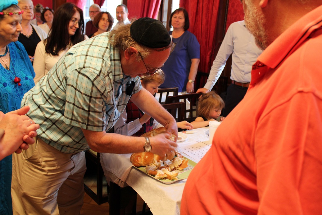 Milí přátelé, k oslavě svátku ŠAVUOT, svátku Daru Tóry a v Izraeli svátku první sklizně, se letos členové a přátelé ŽLU sešli ve středu 31. května 2017 v 18 hodin ve společenském sále ve 3. patře Židovské radnice v Maiselově 18. S významem svátku Šavuot nás seznámila a bohoslužbu vedla kantorka ŽLU Hannah Maxová, která předtím doma upekla a ozdobila 160 perníčků s hebrejskými písmeny. Děti se je při oslavě učily číst, ale i samy malovat na prázdné perníčky. Během oslavy vystoupil pěvecký sbor ŽLU Rimon vedený Danou Krausovou s klavírním doprovodem Elišky Novákové.