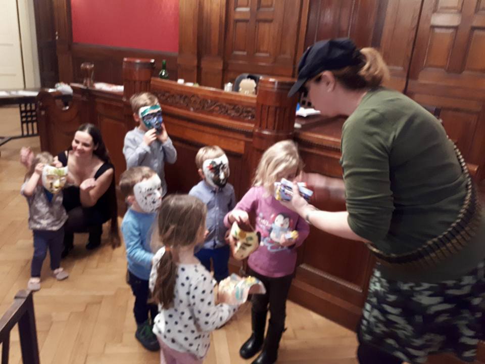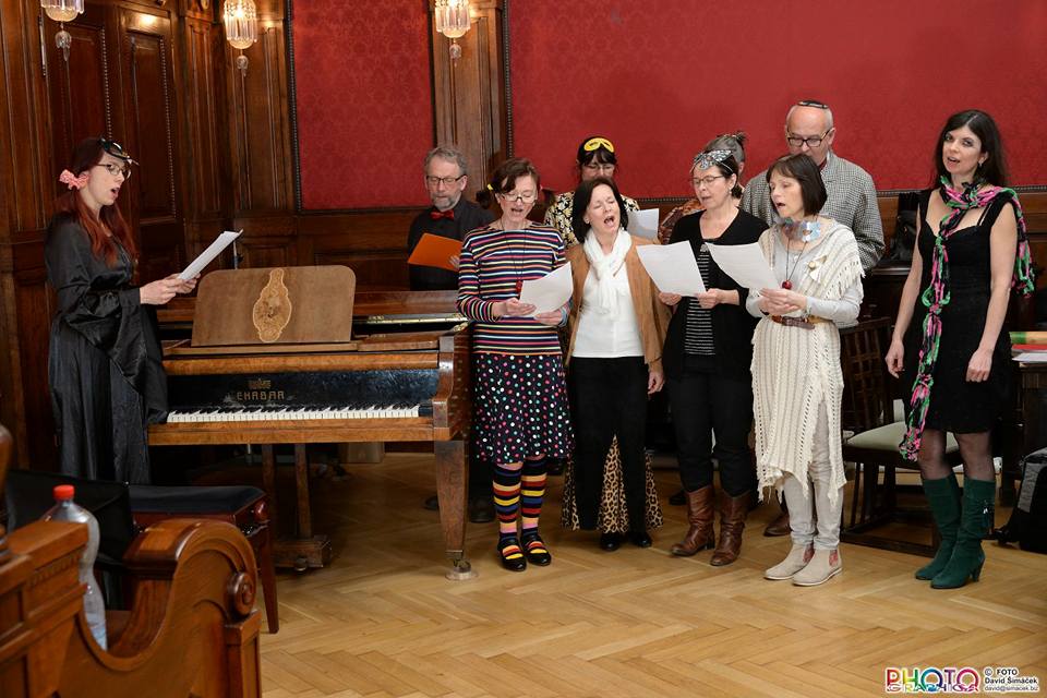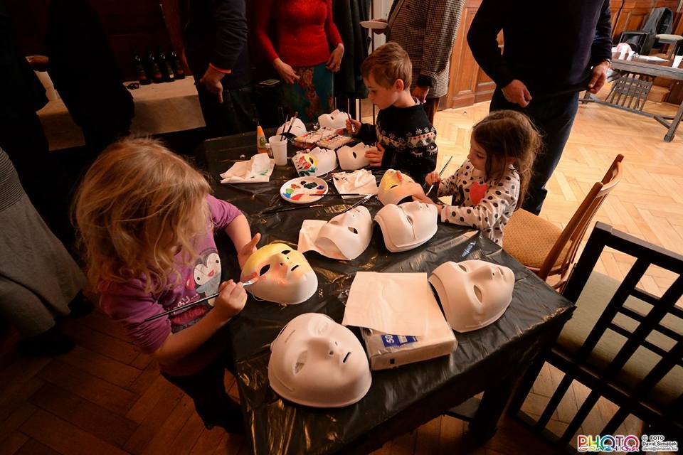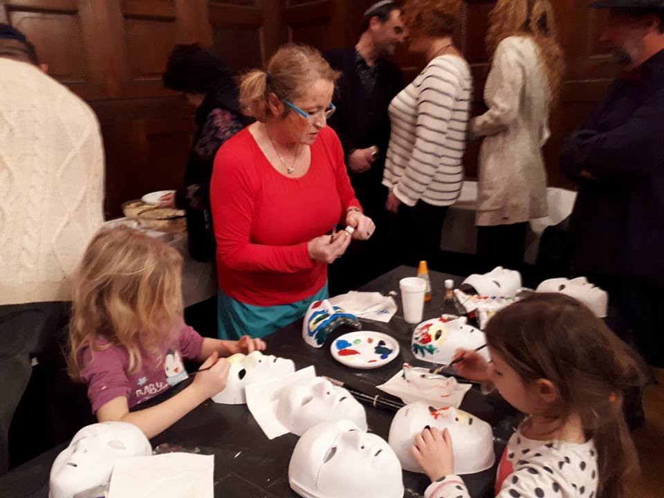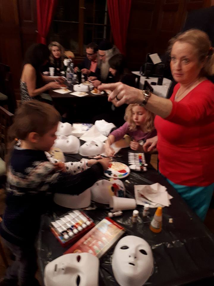 Poté kantorka ŽLU přednesla svou veselou purimovou drašu, kterou najdete: zde Během oslavy vystoupil pěvecký sbor ŽLU Rimon vedený Danou Krausovou. Purimovou píseň na videu v podání sboru Rimon si můžete stáhnout: zde Malování masek bylo určeno především dětem, ale i někteří dospělí se namalovali svoji masku. Barvy, štětce, lepidlo i třpytky byly připraveny. Masky si mohli jejich autoři odnést domů. Proběhla soutěž o nejkrásnější vymalovanou masku. Cenami byly čokolády a lentilky. Ateliér D13 Zuzany Tiché (a její krásné modelky) nás poté příjemně potěšil módní přehlídkou. Následně bylo podáváno purimové občerstvení s hamantašen a košer vínem.