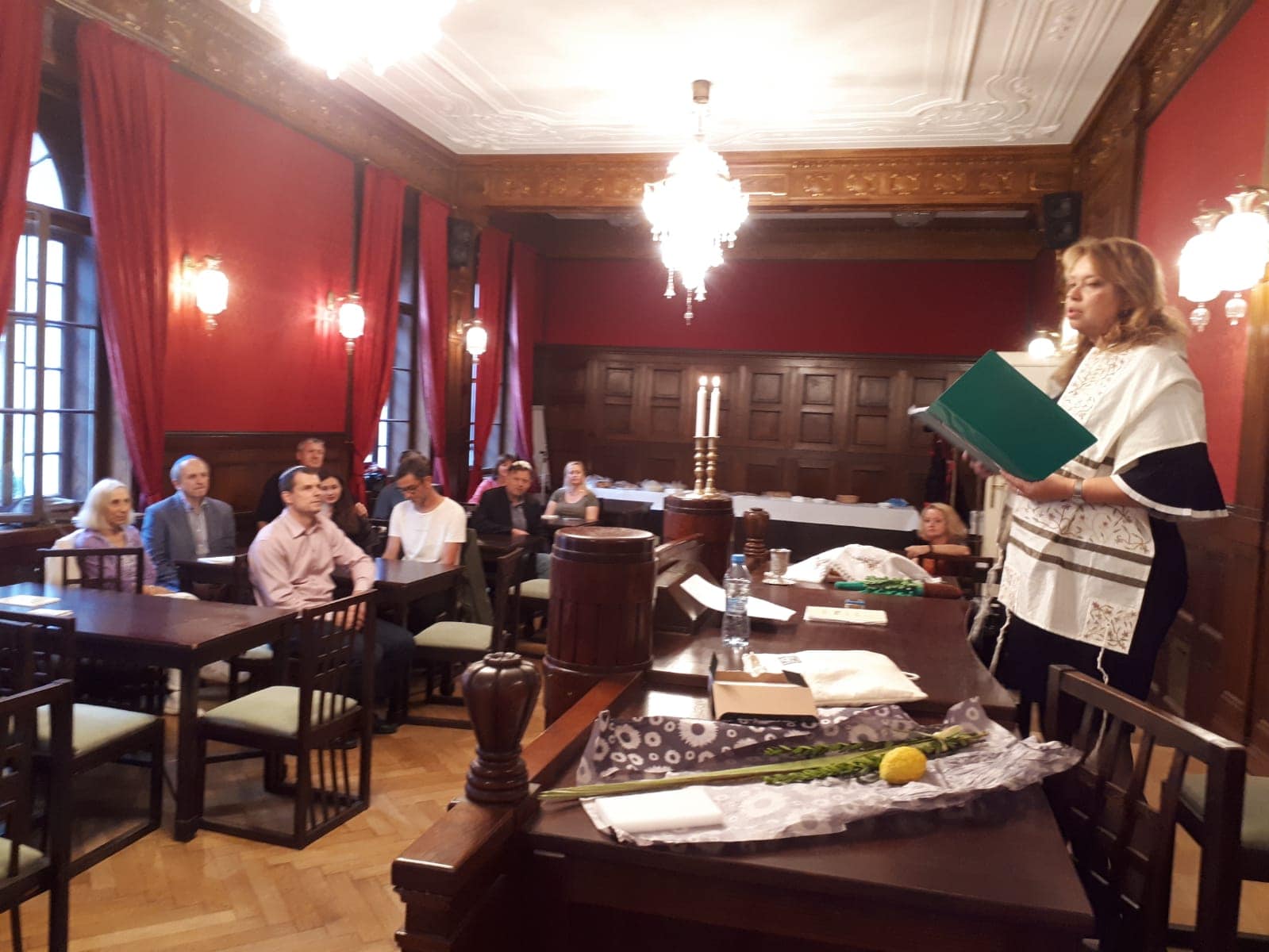 Vážení a milí přátelé, oslavu svátku stánků - v Izraeli svátku druhé sklizně - jsme přivítali společně v novém židovském roce 5779 v předvečer Sukot v pondělí 24. září 2018 od 18:00 hodin ve společenském sále ve 3. patře Maiselovy 18, Praha 1. Rituální část večera vedla kantorka ŽLU Hannah Maxová. Vystoupil pěvecký sbor ŽLU Rimon pod vedením Dany Krausové. Mohli jste se naučit sukotový zvyk, jak správně potřást pravým lulavem s etrogem (palmová ratolest, vrbové a myrtové větvičky s citrusovým plodem). Děti měly ke hraní plyšový lulav s etrogem a též omalovánky ovocných stromů. Na závěr setkání pro nás restaurace Šalom připravila občerstvení a košer víno.
