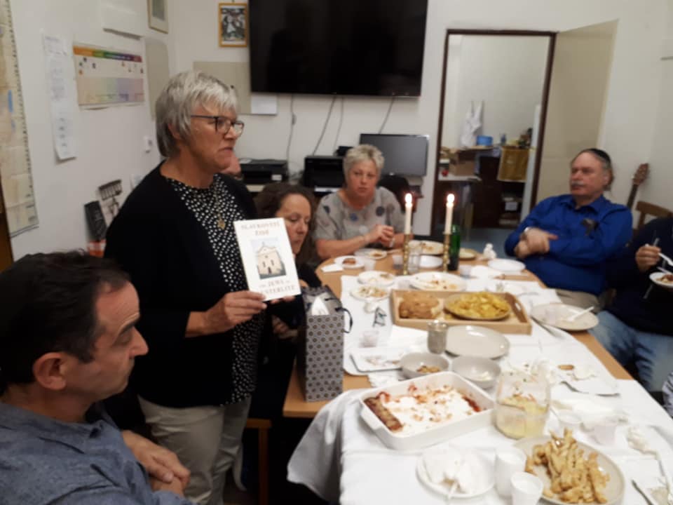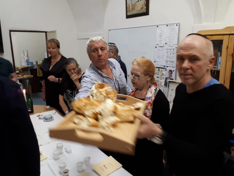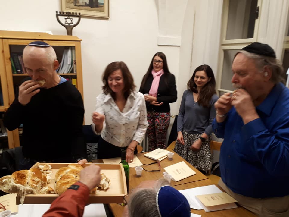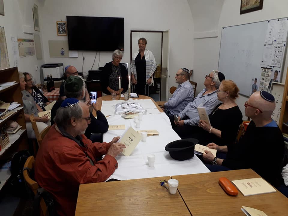 Vážení přátelé, přivítali jsme Šabat s hosty z Nottingham Liberal Synagogue, v pátek 20. září 2019 v 18 hodin v naší modlitebně ve Dlouhé 37 v Praze 1. Bohoslužbu vedla kantorka ŽLU Hannah Maxová. Po společných modlitbách se uskutečnil kiduš. Komunita Nottingham Liberal Synagogue se nyní stará o dva svitky Tóry, které před válkou vlastnily židovské obce ve Slavkově a v Kamenici nad Lipou. Skupina pěti členů liberální synagogy v Nottinghamu vedená paní Wendy Prestney projevila přání strávit šabat s námi. Poté se z Prahy vydali do Kamenice nad Lipou pátrat po historii a osudu tamní židovské komunity. Popovídali jsme si s nimi o tom, co dosud zjistili a jaké mají plány. Psali nám, že přivítají jakékoliv návrhy nebo informace o životě Židů v Kamenici nad Lipou před holocaustem.