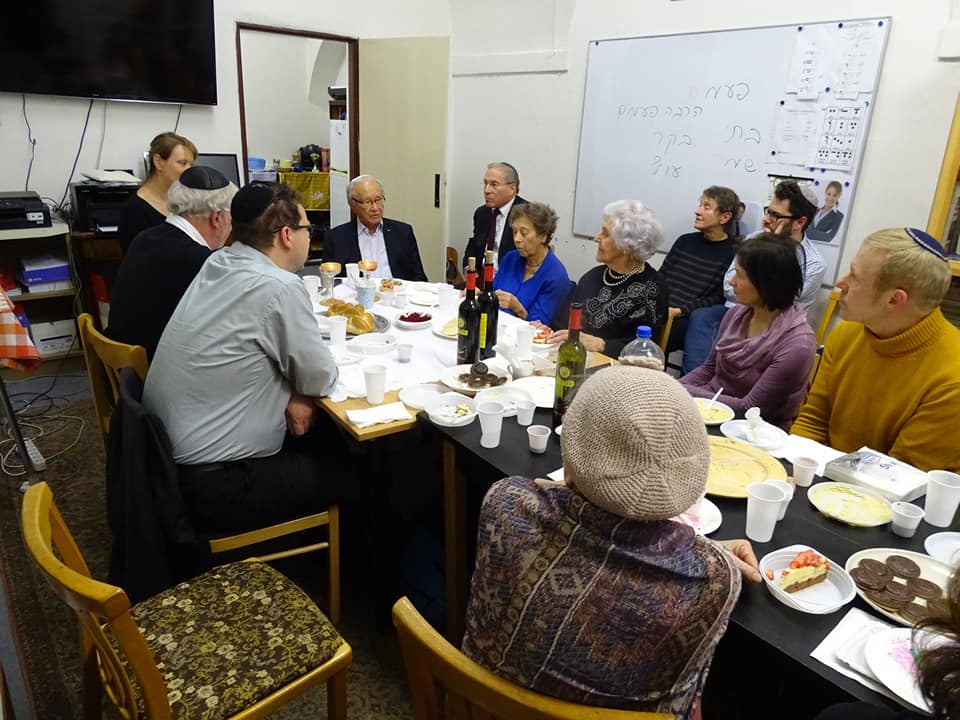 Bohoslužbu vedla chazanka ŽLU Hannah Maxová a vyprávěl pan profesor na téma, jak sám říká „Co mě napadne“, což, jak víme z předchozích setkání, je vždy velmi zajímavé, protože jeho vzpomínky pamětníka první republiky a přeživšího holocaustu jsou úžasné a zcela nenahraditelné. U košer vína jsme se potom spolu naučili hebrejskou píseň „Avinu She-Ba-Shamayim“ (Náš Otec, jenž je na nebesích), která je modlitbou za Stát Izrael. Můžete si ji poslechnout: zde