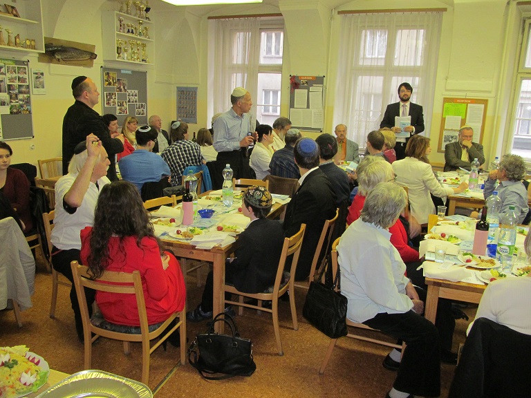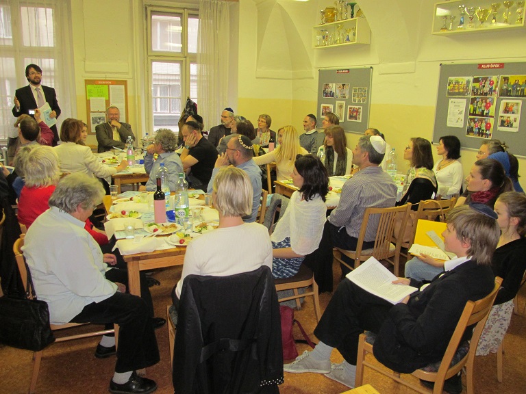 Děkujeme Vám všem, kteří jste se zúčastnili první sederové večeře svátku PESACH, velkého židovského svátku osvobození z otroctví, který letos připadá na dny 14. 4. (Erev Pesach) až 22. 4. 2014. Ve spolupráci s dalšími židovskými organizacemi, Sdružením židovských odbojářů a vojáků, Hidden Child, Magenem a Spolkem akademiků Židů, jsme připravili seder ve společenském sále ČUN ve Dlouhé 37 v pondělí 14. 4. 2014. Sešel se nás rekordní počet 72! Děkujeme kantorovi ŽLU Viktoru Davidu Schwarczovi za první požehnání a zapálení dvou svící, Jonathanu Wootliffovi a Davidu Maxovi za čtení Pesachové Hagady a vedení rituální části Sederu, pěveckému sboru ŽLU Rimon za kulturní program večera. Jsme vděčni Evě Feiglové a všem dalším, kteří se podíleli na organizaci, nákupech, přípravách pohoštění a na závěrečném úklidu sálu.