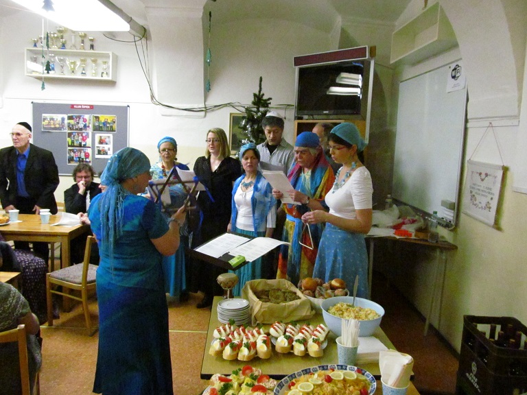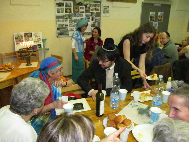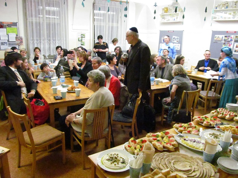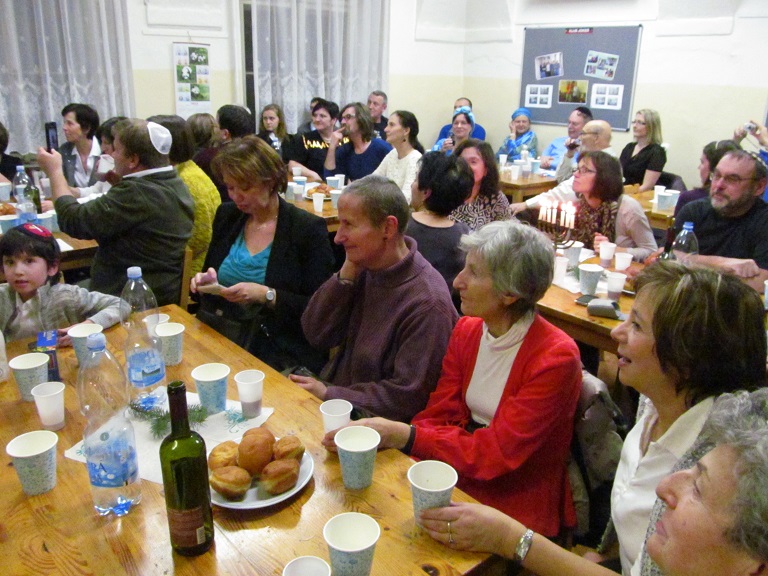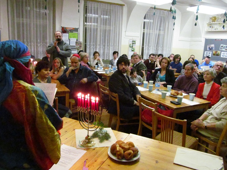 Srdečně děkujeme Vám všem, kteří jste se zúčastnili chanukového setkání 3. prosince 2013 od 18 hod., tedy 7. den svátku Chanuka, v Dlouhé 37. Sešlo se nás více než 70 (!) a v krásné, přátelské atmosféře jsme společně oslavili tento významný židovský svátek. Oslavu svátku zahájil a 7 svící na chanukiji zapálil kantor ŽLU Viktor David Schwarz. Jsme vděčni všem, kteří se podíleli na nákupech, přípravách pohoštění, kulturním programu i na závěrečném úklidu sálu. Chanukové písně Vám pak zazpívala skupina ŽLU Rimon pod vedením Anny Wagnerové a účastníci kurzů biblické hebrejštiny Evy Feiglové a moderní hebrejštiny Viery Adamuščínové. Připraveno bylo také pohoštění s košer vínem, latkes, sufganijot, chumus a jiné dobroty.