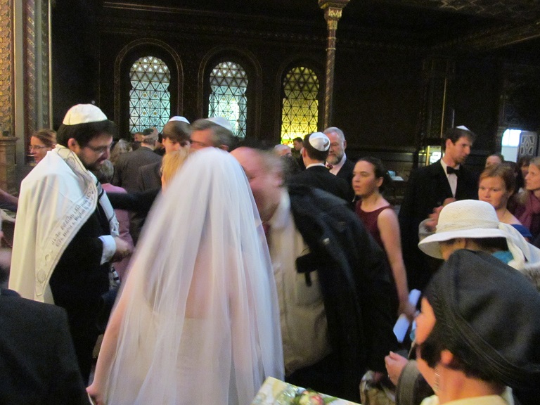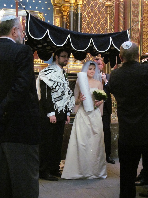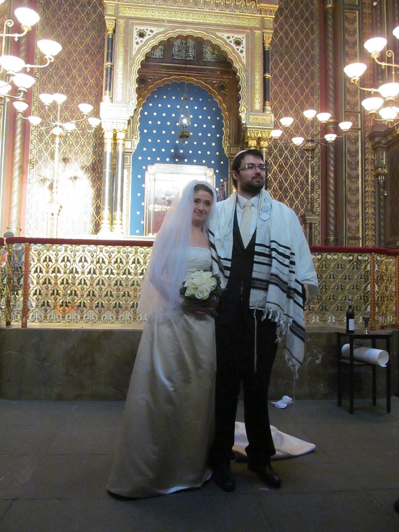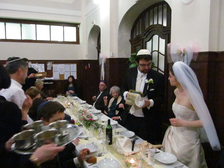 Milí přátelé, v neděli 8. března 2015 (17. Adaru 5775) od 15 hod. se ve Španělské synagoze konala židovská svatba pod chupou rabínského studenta z reformní ješivy Abraham Geiger Kolleg (AGK) Davida Maxy a jeho snoubenky Judity Bergmannové. Svatební obřad vedli: první český absolvent AGK rabín Tomáš Kučera, který působí v Mnichově, viceprezident Světové unie progresivního judaismu (WUPJ) rabín Joel Oseran z Jeruzaléma a rabín Edward van Voolen z AGK v Berlíně. Byla to první poválečné reformní židovská svatba ve Španělské synagoze, svatební hostina následovala na Židovské radnici v Maiselově 18. Na posledních snímcích jsou členové rodiny Davida Maxy s lidmi ze ŽLU a také krásný svatební dort! Oběma novomanželům i progresivnímu židovství v České republice přejeme MAZL TOV! HODNĚ ŠTĚSTÍ!
