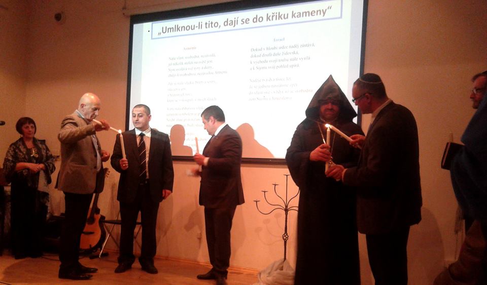 Vzpomínkové setkání - Den vzpomínání na oběti holocaustu - Jom hašoa a 100. výročí arménské genocidy pořádala organizace Operace Ester v neděli 12. 4. 2015 v Domě národnostních menšin v Praze a zúčastnilo se více než 150 lidí. Přikládáme autorizovaný překlad závažného projevu Jeho Excelence Tigrana Seiraniana, velvyslance Arménské republiky v České republice. Chtěli bychom připomenout, že jedním z prvních, kdo arménskou genocidu popsal, byl v Praze narozený židovský spisovatel Franz Werfel ve svém románu „Čtyřicet dnů“, který poprvé vyšel německy v době nástupu Hitlera k moci, v roce 1933, první překlad do češtiny vytvořil již v roce 1934 Pavel Eisner, román však v češtině naposledy vyšel v roce 1988 v nakladatelství Vyšehrad.