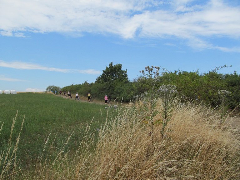 Druhý nedělní cyklistický výlet, který opět naplánoval a vedl předseda židovského sportovního klubu Hakoach Lukáš Kypta, se uskutečnil 2. srpna 2015. Trasa dlouhá téměř 50 km vedla od Hlubočepského zámečku do Radotína, do lesů Českého krasu, na Solopisky, Vonoklasy, Třebotov (kde jsme navštívili židovský hřbitov), Zadní Kopaninu zpět do Řeporyjí, a poté celým Dalejským a Prokopským údolím zpět na zámeček. U Hlubočepského zámečku se nás sešlo zpočátku 16, na trase se připojili další 4. Cesta byla tentokrát mnohem pestřejší a náročnější než při prvním výletu. V Českém krasu jsme projížděli lesy a loukami, kde terén připomínal spíše kamenitý „downhill“, v němž jsme museli kola občas vést. Těžká byla i orientace na křižovatkách lesních cest. Krajina však byla o to krásnější a zážitky bohatší. Několik opožděných jezdců zabloudilo, ale díky mobilům jsme se záhy opět sešli. Tři pády skončily naštěstí jen lehkými odřeninami. Kromě toho jeden z jezdců propíchl zadní kolo a jednu účastnici při obědě píchla vosa do paže… Veškeré tyto komplikace jsme úspěšně zvládli. Občerstvili jsme se při dvou zastávkách v restauracích. Příjemně odpočinkový byl závěrečný sjezd Dalejským a Prokopským údolím zpět k Vltavě. Všichni v pořádku dorazili do cíle.