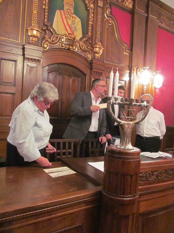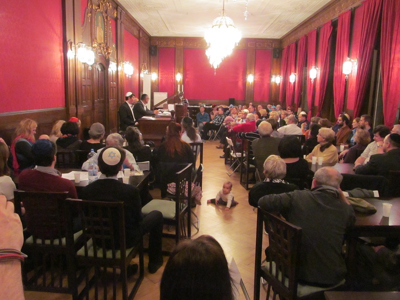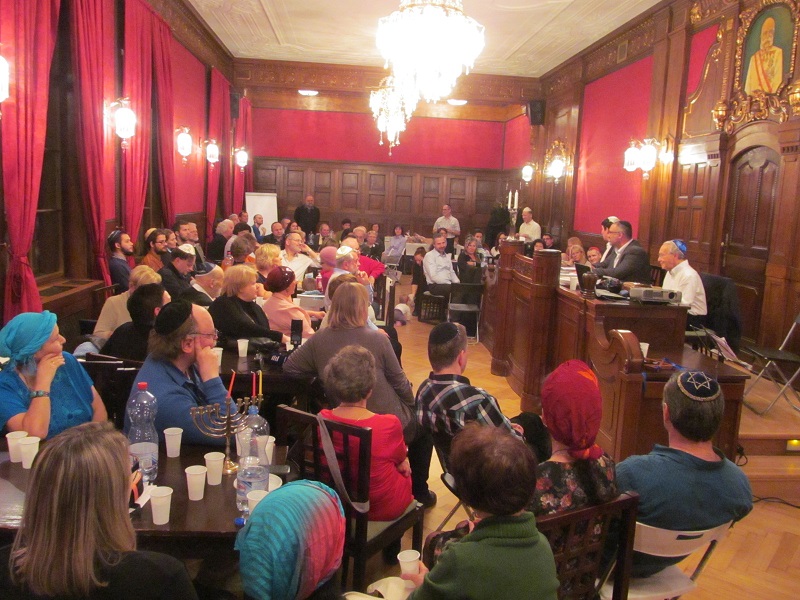 ve společenském sále ve 3. patře Židovské radnice ŽO Praha v Maiselově 18, Praha 1 – Staré Město, a to večer v 1. dni svátku CHANUKA, v pondělí 7. prosince 2015 od 18:00 hodin. K zapálení dvou svíček na chanukii jsme se sešli v nečekaně velkém počtu celkem 107 lidí. Sál, který má pouze 55 židlí, jsme však stačili včas doplnit o našich 52 skládacích židliček z modlitebny ŽLU ve Dlouhé ulici. Bohoslužbu vedli rabín Bnej Israel David Bohbot a kantor Rafi Rod. Svou přítomností na oslavě nás poctil náš dobrý přítel Prof. Alexander Nesanel Fried, který přednesl své nenahraditelné vzpomínky na článek prezidenta Tomáše Garrigue Masaryka o sionismu a na poslední Masarykovu návštěvu brněnské synagogy během svátku Chanuka v roce 1937.