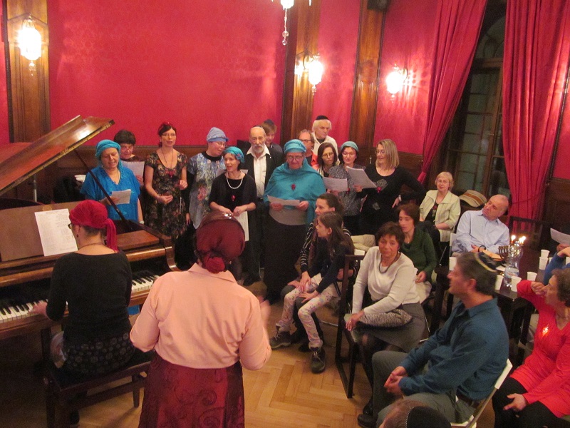 Chanukové písně nám zazpívala skupina ŽLU Rimon, pod vedením Anny Wagnerové s klavírním doprovodem Elišky Novákové a kytarou Petra Nováka. Známou chanukovou píseň „Maoz cur“ (Nedobytná pevnosti) si můžete poslechnout i zhlédnout na videozáznamu, který si pod heslem CHANUKA15 stáhnete: zde Texty některých chanukových písní jsou v 16. příloze. Na chanukovém setkání jsme si poslechli též jidiš píseň „Chanuke is freilech“ a ukolébavku se sefardskou melodikou v podání operní pěvkyně Jaroslavy Maxové.