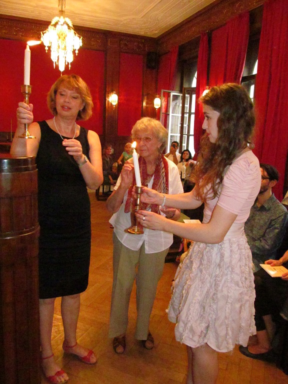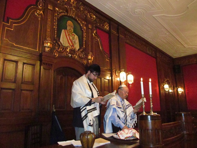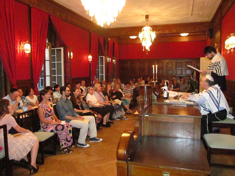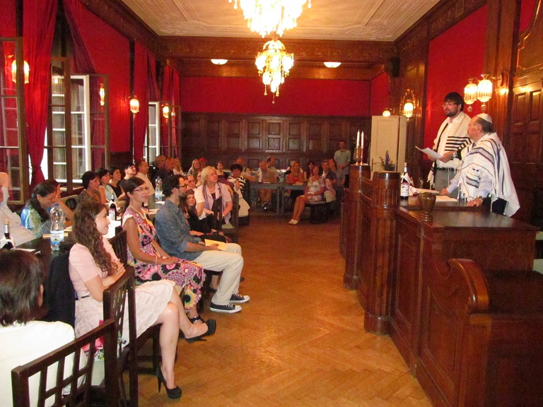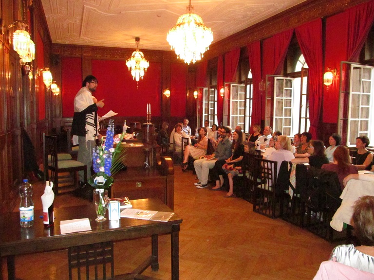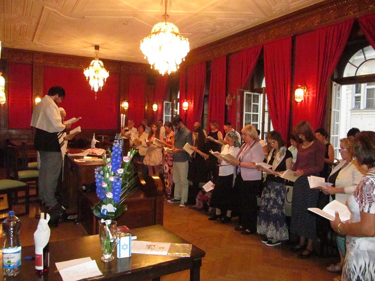 ve 3. patře Židovské radnice v Maiselově 18 k přivítání Šabatu. Šestinásobný minjan neměla v té době asi žádná pražská synagoga! Zvláště jsme vděčni ctěnému kantorovi ŽLU Viktoru Davidu Schwarczovi, absolventu judaistiky na Univerzitě Karlově a rabínskému studentovi z Abraham Geiger Kolleg v Berlíně Davidu Maxovi, pěveckému sboru ŽLU Rimon a operní sólistce Jaroslavě Haně Maxové, kteří nás provázeli bohoslužbou Kabalat Šabat. Za závěrečné požehnání vína a chleba děkujeme profesoru univerzit v Praze a v Jeruzalémě Alexandru Friedovi a rabínu kongregace Bnej Israel Davidu Bohbotovi.