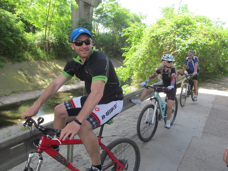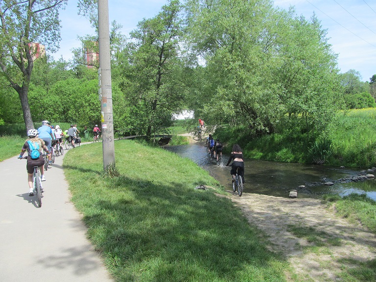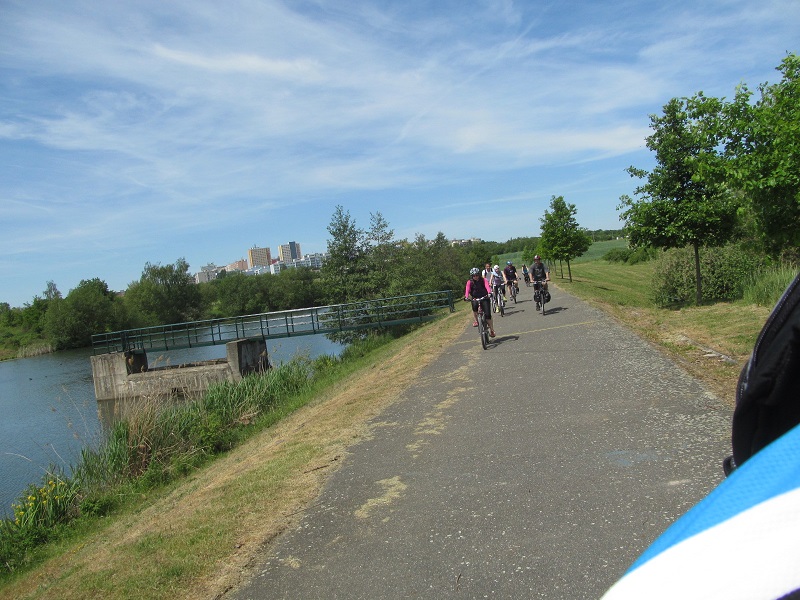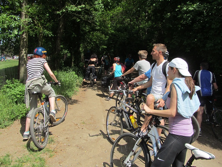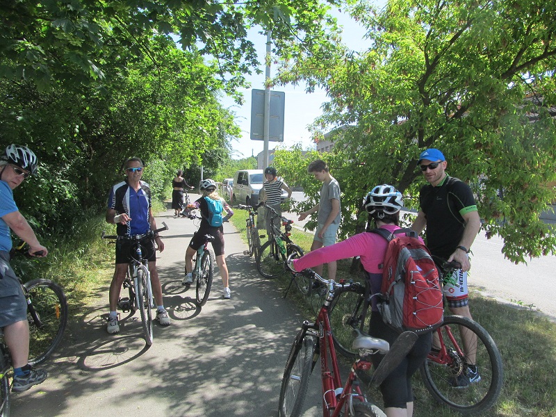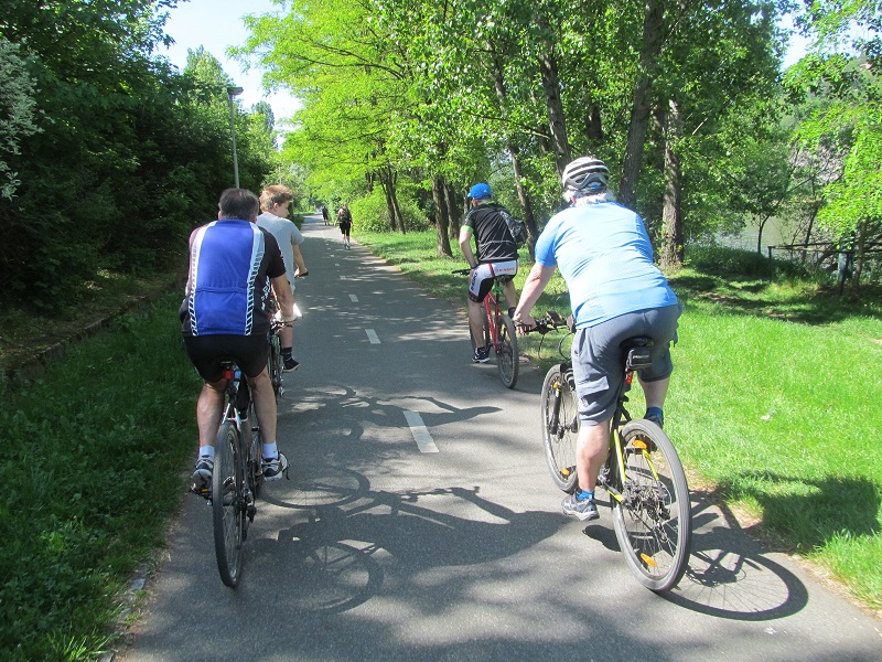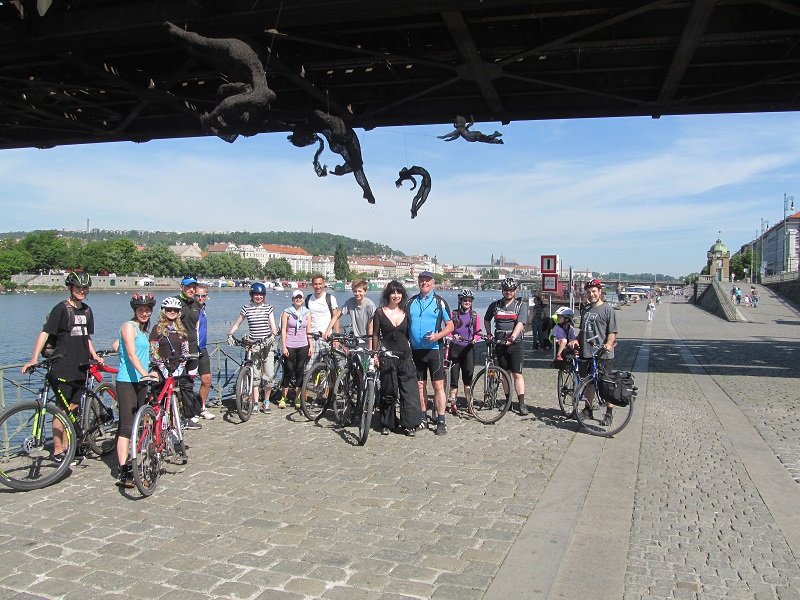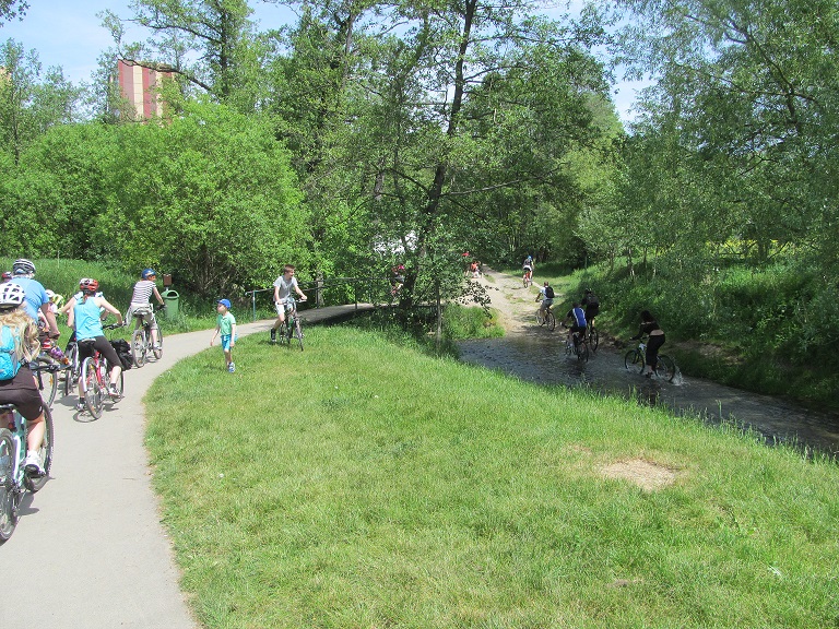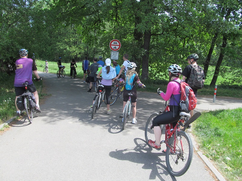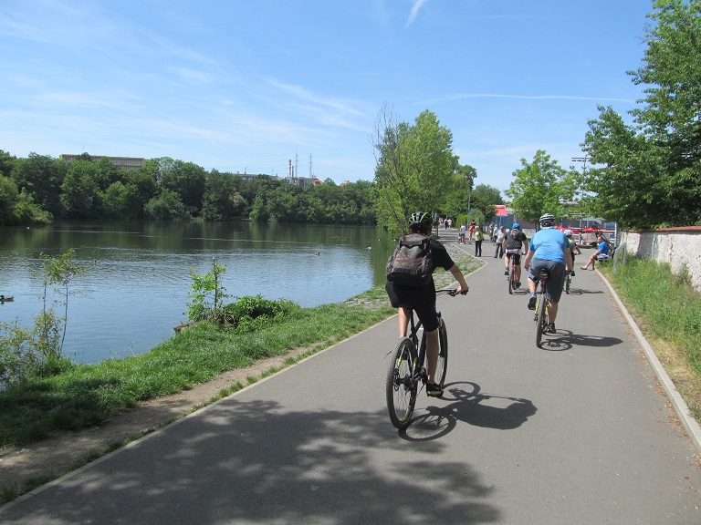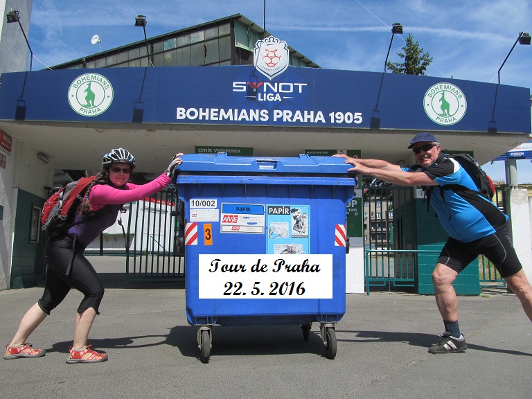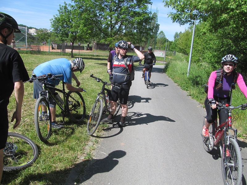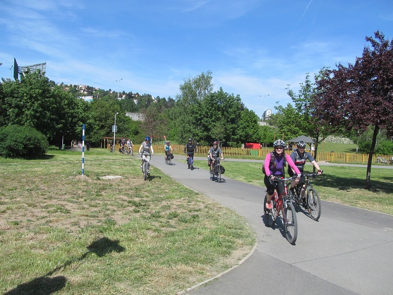 V neděli 22. 5. 2016 se 15 cyklistů ze sportovního klubu Hakoach a Židovské liberální unie spolu se svými přáteli vydalo na další výlet „Tour de Praha“, který opět naplánoval a vedl Lukáš Kypta. Od železničního mostu na Výtoni zamířili na 37 km dlouhou cestu po silnicích a cyklostezkách na jihu Prahy. Za krásného slunečného počasí úspěšně projeli celou trasu. Jak vidíte na snímcích, cestou překonali i jeden defekt zadního kola, projeli cesty Krčským a Milíčovským lesem, kolem rybníků a toku Botiče, potkali na pastvě koně (patřící policejnímu sboru na Jižním Městě), první zastávku si udělali na hřišti Rugby Klubu v Petrovicích, kde zhlédli část zápasu ženských rugbyových týmů Sparty a Tatry Smíchov. Za stavu 12 : 7 pro Spartu pokračovali v cestě kolem Hostivařské nádrže až k původní michelské synagoze, která nyní slouží jako evangelický kostel. Od ní se vydali nuselským údolím zpět k Vltavě, kde na závěr této povedené akce ještě společně poseděli v restauraci Na Výtoni. Další výlet na kolech chystáme až po oslavě svátku Šavuot, na kterou Vás srdečně zveme ve čtvrtek 9. 6. 2016.