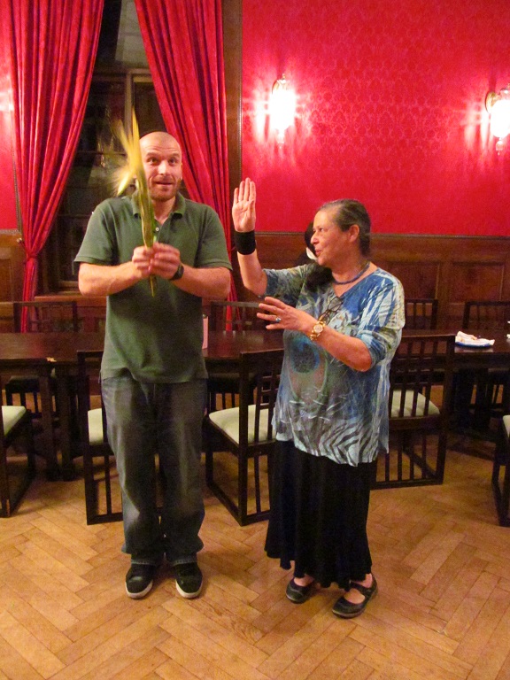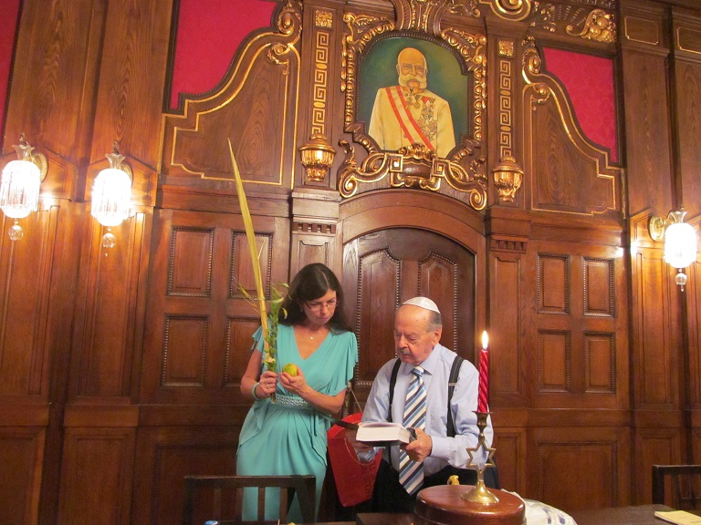 V úterý 14. 10. 2014 na radnici Židovské obce v Praze v Maiselově 18 proběhla oslava svátku Sukot. Uznání zaslouží pěvecká skupina ŽLU Rimon (pod vedením Anny Wagnerové a Evy Feiglové), která nás v úvodu oslavy písněmi i slovem provedla svátky židovského roku. Zvláště jsme vděčni ctěnému kantorovi ŽLU Viktoru Davidu Schwarczovi, který zahájil rituál svátku Sukot modlitbami a poté pokračoval ve svých vzpomínkách na židovské komunity Slovenska, tentokrát nám připomenul slavnou ješivu a synagogu v obci Huncovce (maďarsky: Hunfalva) pod Tatrami. Naučil nás také hlavní rituální zvyk svátku Sukot, a to jak potřást pravým lulavem s etrogem. Pro potěšení a vzpomínku přikládáme 12 fotografií.