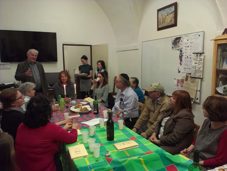 Milí přátelé, Židovská liberální unie v ČR v pátek 17. března 2017 od 18 hodin v naší modlitebně ve Dlouhé 37 v Praze 1 uspořádala přivítání dne odpočinku Kabalat Šabat vedený novou kantorkou ŽLU, operní mezzosopranistkou Jaroslavou Hannah Maxovou. Naším vzácným hostem byl 94letý kantor a prezident ŽLU Viktor David Schwarcz. Po společných modlitbách, ke kterým se sešlo 32 dospělých a 3 děti, se uskutečnil kiduš, vedený Viktorem Davidem Schwarczem a Larry Somerem, se zpěvem tradičních šabatových písní (zmirot) izraelským košer vínem a občerstvením.