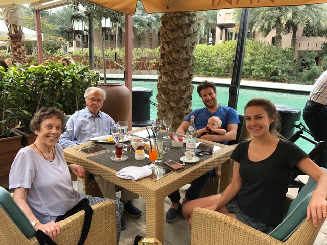 Popis k fotografiím: pan profesor s vnukem Jacobem Avrahamem; rodina Friedových – manželka Dorle, Alexandr, syn Jonathan, vnuk Jacob Avraham a snacha Olga; pan profesor při přednášce v německém gymnáziu.
