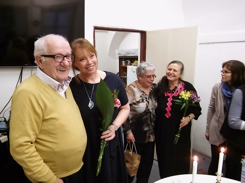 Milí přátelé, Židovská liberální unie v ČR v pátek 28. dubna 2017 od 18 hodin v naší modlitebně ve Dlouhé 37 v Praze 1 uspořádala už druhé přivítání dne odpočinku Kabalat Šabat pod vedením nové kantorky ŽLU, Jaroslavy Hannah Maxové. Kantor a prezident ŽLU Viktor David Schwarcz se kvůli mírnému nachlazení a deštivému počasí nakonecm tohoto setkání nezúčastnil. Naším zahraničním hostem byl londýnský dramatik Lionel Goldstein s chotí. Po společných modlitbách, ke kterým se tentokrát sešlo 28 dospělých a 3 děti, se uskutečnil kiduš, vedený Benjaminem Kurasem a Larry Somerem, se zpěvem tradičních šabatových písní (zmirot) izraelským košer vínem a občerstvením, kdy jsme zároveň společně oslavili narozeniny členky představenstva ŽLU a lektorky biblické hebrejštiny Evy Feiglové, ad mea veesrim šana!