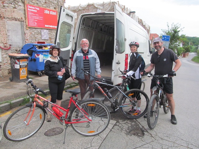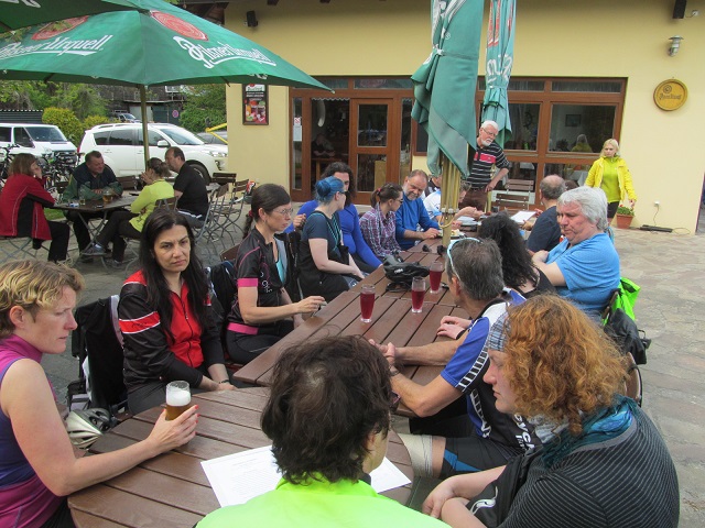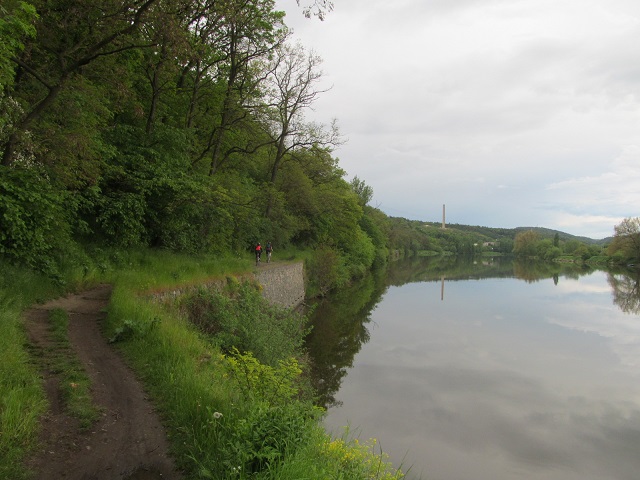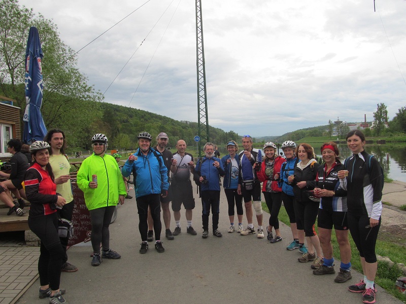 Poté se účastníci vydali na 75 kilometrů dlouhou cestu zpátky do Prahy. Počasí bylo zpočátku slunečné, před Roudnicí se však přihnaly mraky a začal liják, naštěstí se cyklistům podařilo ukrýt pod střechu hospody U Grobiána. Po půlhodině déšť ustal a všichni se vydali na další cestu. Přestávku na oběd si udělali až na 40 kilometru v Nelahozevsi, v restauraci Marina na břehu Vltavy. Po občerstvení pokračovali do Kralup, kde cestu ukončilo 8 účastníků, kteří odjeli do Prahy vlakem. Zbylých 15 cyklistů vyrazilo z Kralup po proslulé, úzké, ale malebné vltavské navigaci, které však byla po dešti blátivá a kluzká. Všichni překonali nástrahy této stezky. Jeden účastník se odpojil od skupiny ve směru na Máslovice. Zbývajících 14 dojelo po břehu Vltavy až do Klecánek, kde si společně připili na zdar této krásné akce a slíbili si, že příští rok se na ní opět sejdou. Z Klecánek pak všichni snadno dorazili do Tróje a rozjeli se do svých domovů.