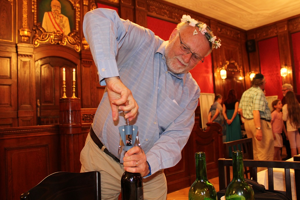Ve společenské části oslavy Šavuot nás čekalo izraelské košer víno a mléčné občerstvení, které pro nás připravila košer jídelna DSP Hagibor. Mléčná jídla se jedí o Šavuot proto, že Tóra je jako mléko a med. Také číselná hodnota slova חלב mléko je 40 (8+30+2), jako počet dní, které strávil Mojžíš na Sinaji, když přijímal Tóru.