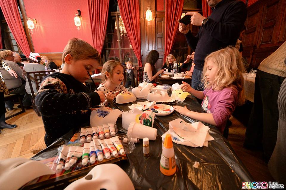 Poté kantorka ŽLU přednesla svou veselou purimovou drašu, kterou najdete: zde Během oslavy vystoupil pěvecký sbor ŽLU Rimon vedený Danou Krausovou. Purimovou píseň na videu v podání sboru Rimon si můžete stáhnout: zde Malování masek bylo určeno především dětem, ale i někteří dospělí se namalovali svoji masku. Barvy, štětce, lepidlo i třpytky byly připraveny. Masky si mohli jejich autoři odnést domů. Proběhla soutěž o nejkrásnější vymalovanou masku. Cenami byly čokolády a lentilky. Ateliér D13 Zuzany Tiché (a její krásné modelky) nás poté příjemně potěšil módní přehlídkou. Následně bylo podáváno purimové občerstvení s hamantašen a košer vínem.