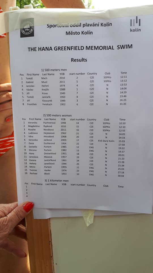 Následující neděli 25. 8. 2019 nás londýnská výprava pozvala do Kolína na Kmochův ostrov od 10:00 hodin, abychom se zúčastnili 2. ročníku Plaveckého memoriálu Hany Greenfield Lustigové. Zaplavat na Labi jsme si mohli následující trasy: 500 metrů pro každého, 1 km pro dobré plavce či 3 km pro zkušené sportovní plavce nebo jsme mohli plavce jenom povzbuzovat ze břehu.