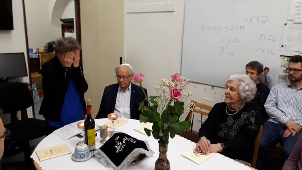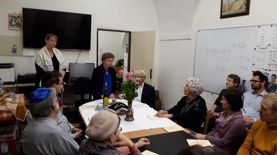 Bohoslužbu vedla chazanka ŽLU Hannah Maxová a vyprávěl pan profesor na téma, jak sám říká „Co mě napadne“, což, jak víme z předchozích setkání, je vždy velmi zajímavé, protože jeho vzpomínky pamětníka první republiky a přeživšího holocaustu jsou úžasné a zcela nenahraditelné. U košer vína jsme se potom spolu naučili hebrejskou píseň „Avinu She-Ba-Shamayim“ (Náš Otec, jenž je na nebesích), která je modlitbou za Stát Izrael. Můžete si ji poslechnout: zde