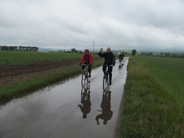 V neděli 18. 5. 2014 časně ráno se „11 statečných" vydalo na 14. ročník tradiční cyklistické „Cesty ke svobodě" Terezín – Praha. Hustý vytrvalý déšť je provázel z Prahy až k památníku v Terezíně na břehu řeky Ohře. Tam si přečetli vzpomínku Prof. Jiřího Fraňka na výuku židovských dětí v terezínském ghettu, které později všechny zahynuly v koncentračních táborech. Po společné modlitbě Kadiš za oběti holocaustu se účastníci vydali na 75 kilometrů dlouhou cestu zpátky do Prahy. Jako zázrakem déšť brzy ustal a až do cíle v Tróji bylo pro cyklisty poměrně příjemné, chladnější počasí s drobnými přeháňkami, občas dokonce vysvitlo slunce! Děkujeme všem, kteří se letošního ročníku zúčastnili!