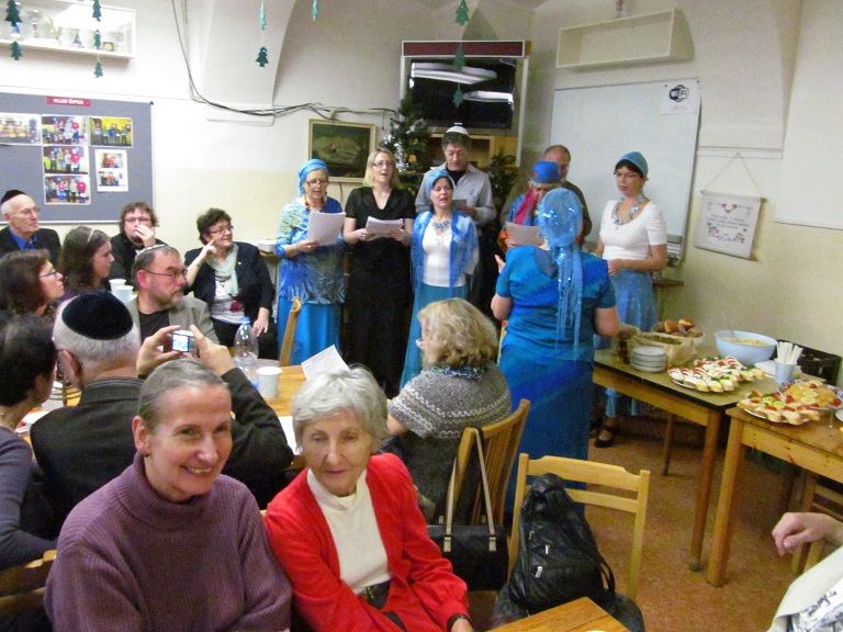 Srdečně děkujeme Vám všem, kteří jste se zúčastnili chanukového setkání 3. prosince 2013 od 18 hod., tedy 7. den svátku Chanuka, v Dlouhé 37. Sešlo se nás více než 70 (!) a v krásné, přátelské atmosféře jsme společně oslavili tento významný židovský svátek. Oslavu svátku zahájil a 7 svící na chanukiji zapálil kantor ŽLU Viktor David Schwarz. Jsme vděčni všem, kteří se podíleli na nákupech, přípravách pohoštění, kulturním programu i na závěrečném úklidu sálu. Chanukové písně Vám pak zazpívala skupina ŽLU Rimon pod vedením Anny Wagnerové a účastníci kurzů biblické hebrejštiny Evy Feiglové a moderní hebrejštiny Viery Adamuščínové. Připraveno bylo také pohoštění s košer vínem, latkes, sufganijot, chumus a jiné dobroty.