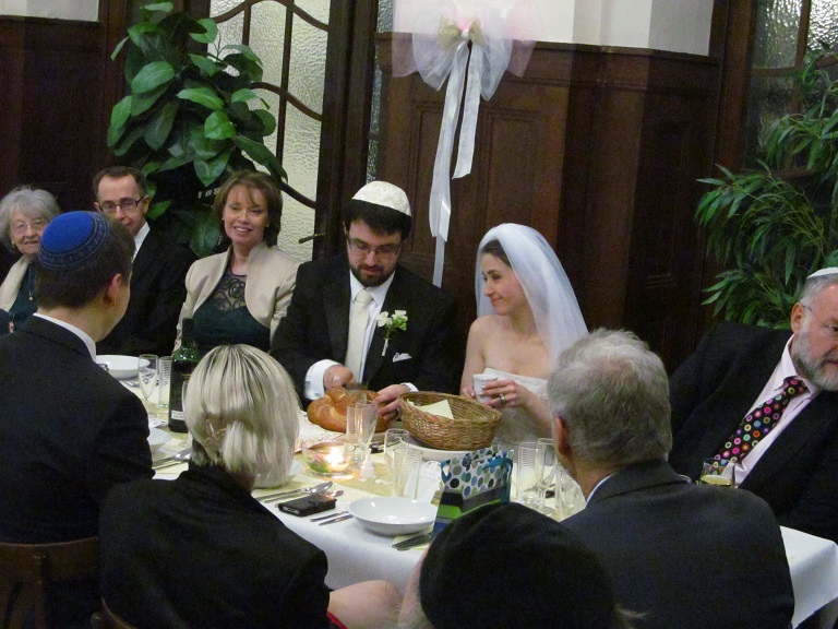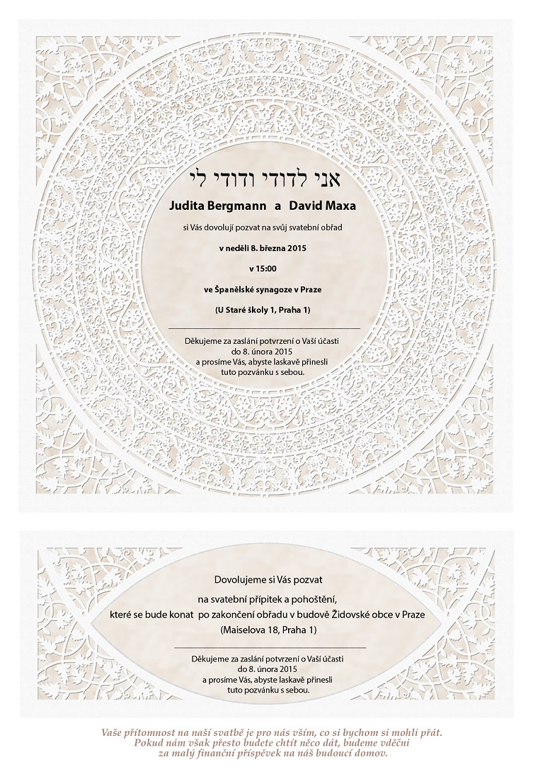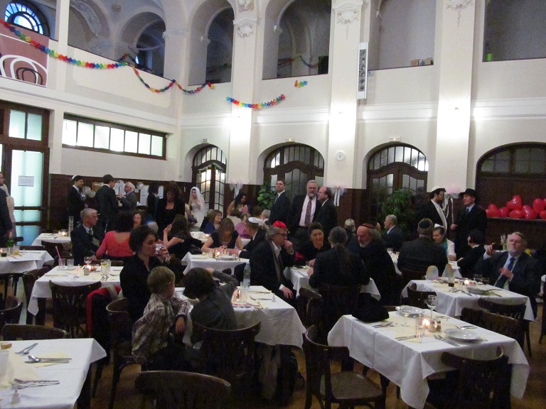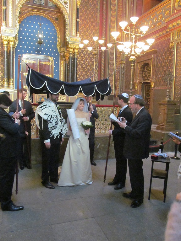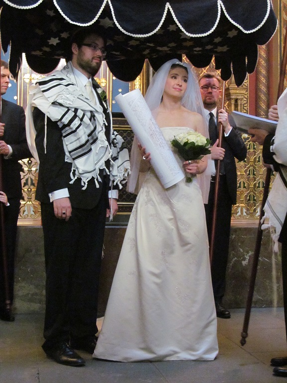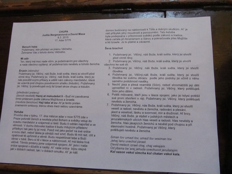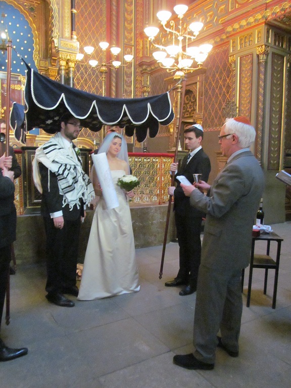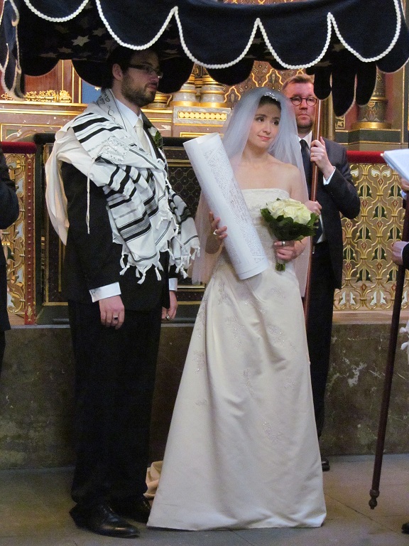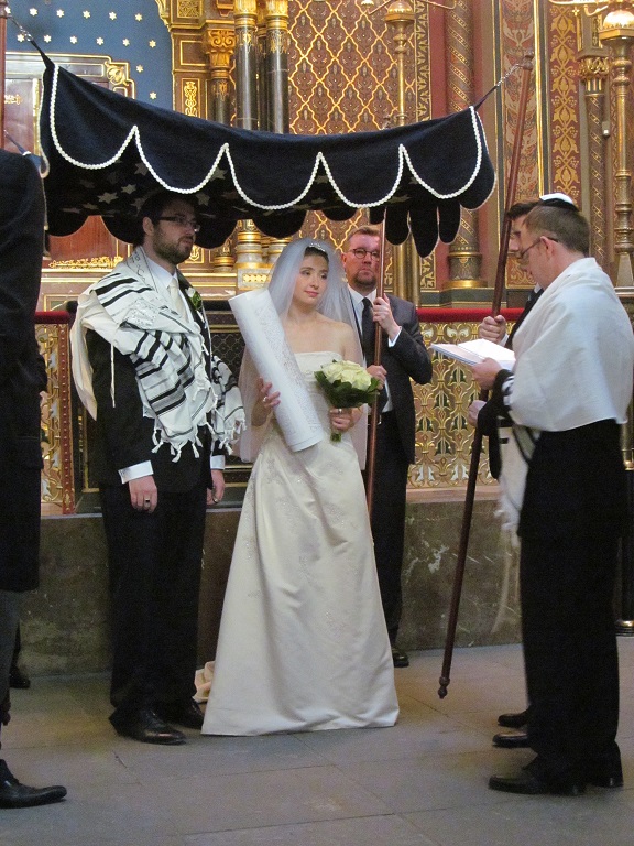 Milí přátelé, v neděli 8. března 2015 (17. Adaru 5775) od 15 hod. se ve Španělské synagoze konala židovská svatba pod chupou rabínského studenta z reformní ješivy Abraham Geiger Kolleg (AGK) Davida Maxy a jeho snoubenky Judity Bergmannové. Svatební obřad vedli: první český absolvent AGK rabín Tomáš Kučera, který působí v Mnichově, viceprezident Světové unie progresivního judaismu (WUPJ) rabín Joel Oseran z Jeruzaléma a rabín Edward van Voolen z AGK v Berlíně. Byla to první poválečné reformní židovská svatba ve Španělské synagoze, svatební hostina následovala na Židovské radnici v Maiselově 18. Na posledních snímcích jsou členové rodiny Davida Maxy s lidmi ze ŽLU a také krásný svatební dort! Oběma novomanželům i progresivnímu židovství v České republice přejeme MAZL TOV! HODNĚ ŠTĚSTÍ!