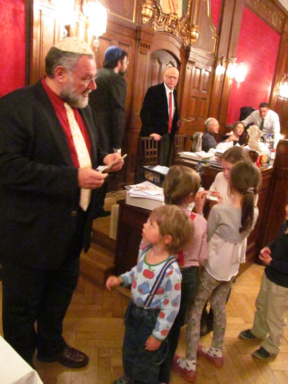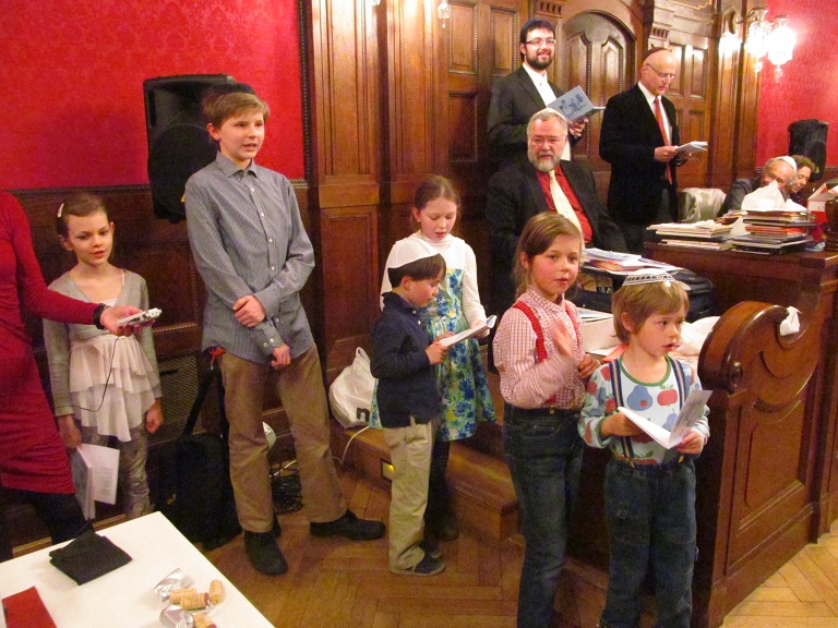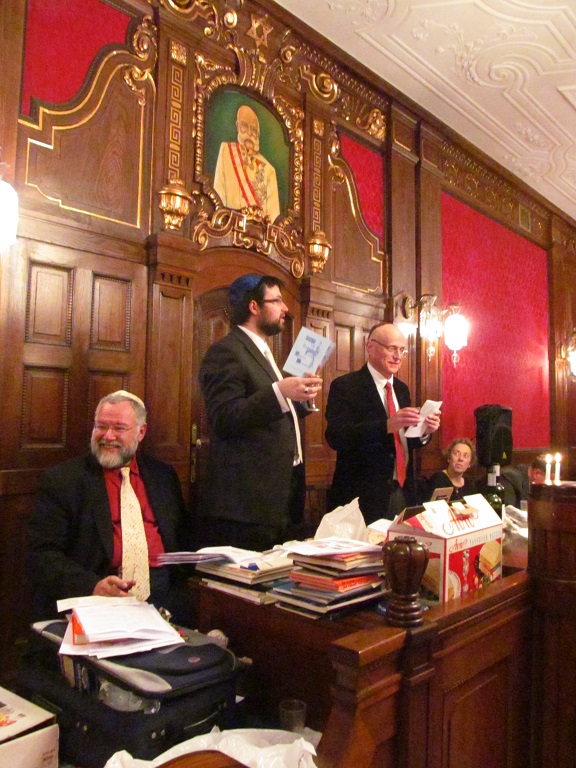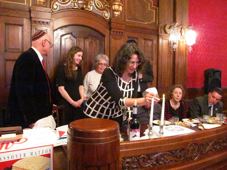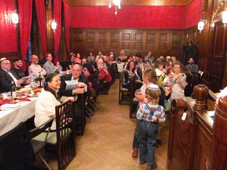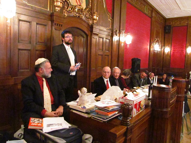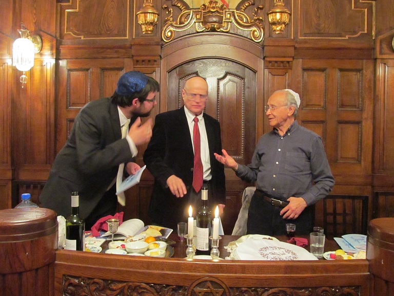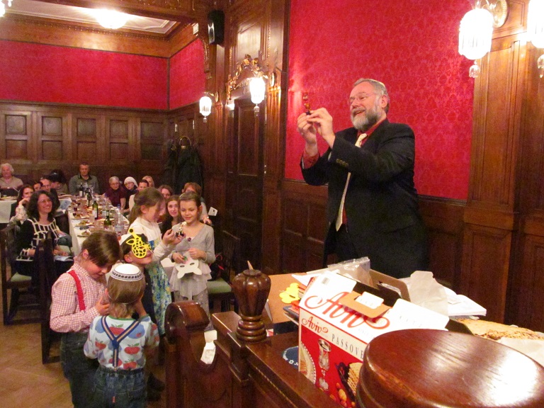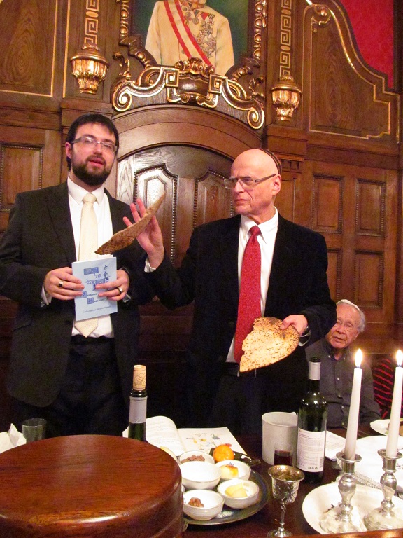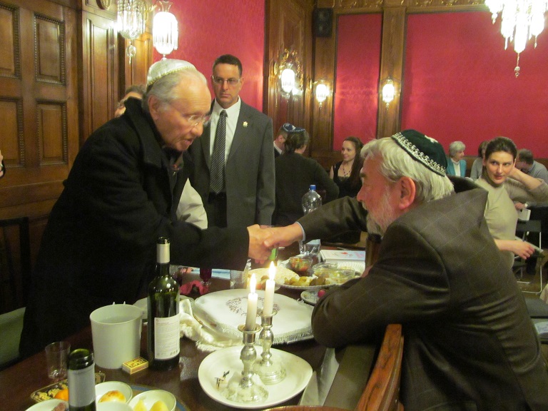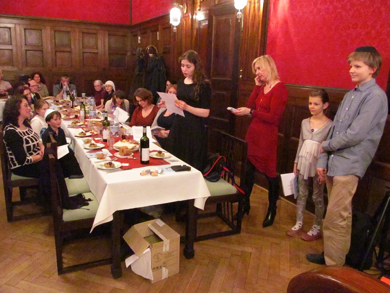 Vážení a milí přátelé, letošní první sederová večeře svátku Pesach spojená s oslavou Šabatu, kterou ŽLU pořádala v pátek 3. dubna 2015 od 18:00 hodin ve společenském sále ve 3. patře Židovské radnice v Maiselově 18, byla opravdu mimořádná. Rozhodli jsme se vycházet ze židovské tradice, že se nemají odmítat zájemci o účast na Sederu… Jaké to mělo následky – v sále radnice, kde je 55 židlí, se nás sešlo 107! Počítali jsme s tím a včas v obchodu IKEA dokoupili 52 skládacích židlí a dopravili je do sálu ve 3. patře. Měli jsme též domluveno, že v kavárně na galerii v 1. patře, kde jsme měli uloženo zakoupené košer víno, si také půjčíme 6 dalších stolků. Žel dlouho trvalo, než jsme přesvědčili ostrahu ŽO, aby nám kavárnu otevřela.