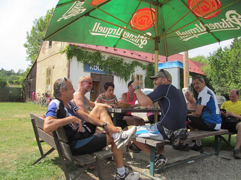 Druhý nedělní cyklistický výlet, který opět naplánoval a vedl předseda židovského sportovního klubu Hakoach Lukáš Kypta, se uskutečnil 2. srpna 2015. Trasa dlouhá téměř 50 km vedla od Hlubočepského zámečku do Radotína, do lesů Českého krasu, na Solopisky, Vonoklasy, Třebotov (kde jsme navštívili židovský hřbitov), Zadní Kopaninu zpět do Řeporyjí, a poté celým Dalejským a Prokopským údolím zpět na zámeček. U Hlubočepského zámečku se nás sešlo zpočátku 16, na trase se připojili další 4. Cesta byla tentokrát mnohem pestřejší a náročnější než při prvním výletu. V Českém krasu jsme projížděli lesy a loukami, kde terén připomínal spíše kamenitý „downhill“, v němž jsme museli kola občas vést. Těžká byla i orientace na křižovatkách lesních cest. Krajina však byla o to krásnější a zážitky bohatší. Několik opožděných jezdců zabloudilo, ale díky mobilům jsme se záhy opět sešli. Tři pády skončily naštěstí jen lehkými odřeninami. Kromě toho jeden z jezdců propíchl zadní kolo a jednu účastnici při obědě píchla vosa do paže… Veškeré tyto komplikace jsme úspěšně zvládli. Občerstvili jsme se při dvou zastávkách v restauracích. Příjemně odpočinkový byl závěrečný sjezd Dalejským a Prokopským údolím zpět k Vltavě. Všichni v pořádku dorazili do cíle.
