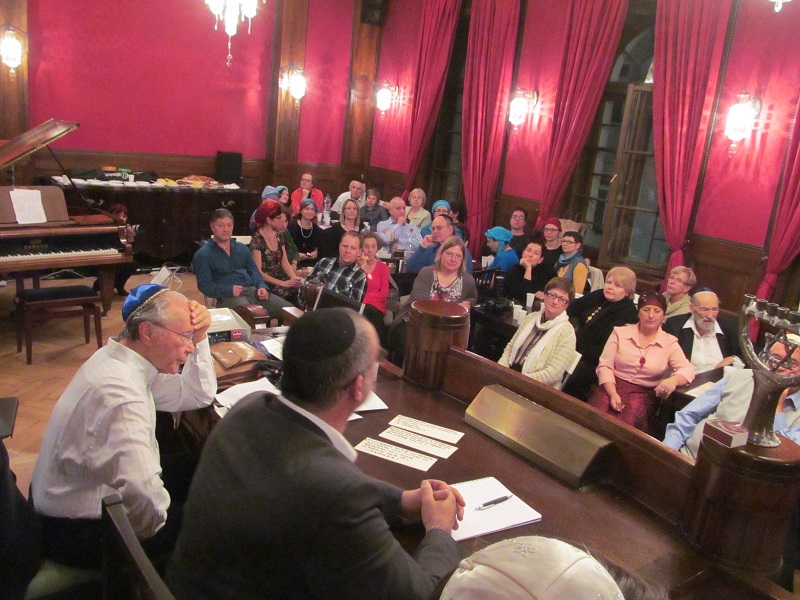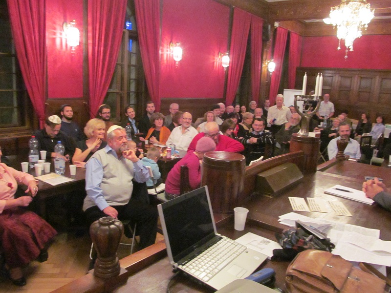 ve společenském sále ve 3. patře Židovské radnice ŽO Praha v Maiselově 18, Praha 1 – Staré Město, a to večer v 1. dni svátku CHANUKA, v pondělí 7. prosince 2015 od 18:00 hodin. K zapálení dvou svíček na chanukii jsme se sešli v nečekaně velkém počtu celkem 107 lidí. Sál, který má pouze 55 židlí, jsme však stačili včas doplnit o našich 52 skládacích židliček z modlitebny ŽLU ve Dlouhé ulici. Bohoslužbu vedli rabín Bnej Israel David Bohbot a kantor Rafi Rod. Svou přítomností na oslavě nás poctil náš dobrý přítel Prof. Alexander Nesanel Fried, který přednesl své nenahraditelné vzpomínky na článek prezidenta Tomáše Garrigue Masaryka o sionismu a na poslední Masarykovu návštěvu brněnské synagogy během svátku Chanuka v roce 1937.